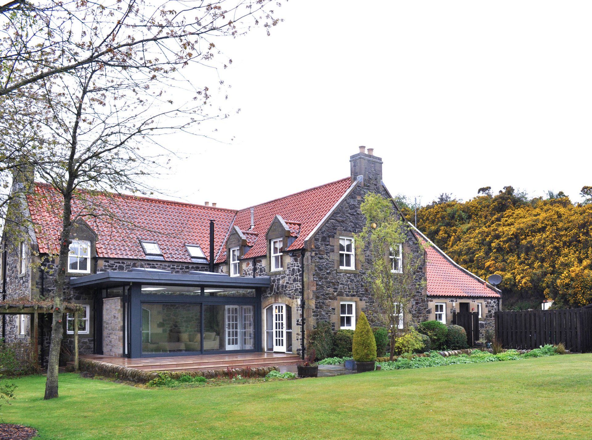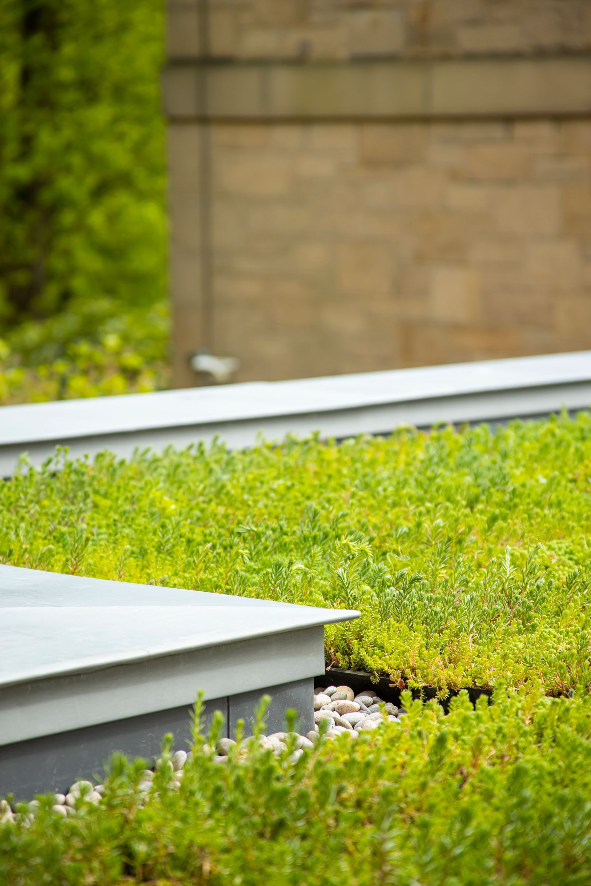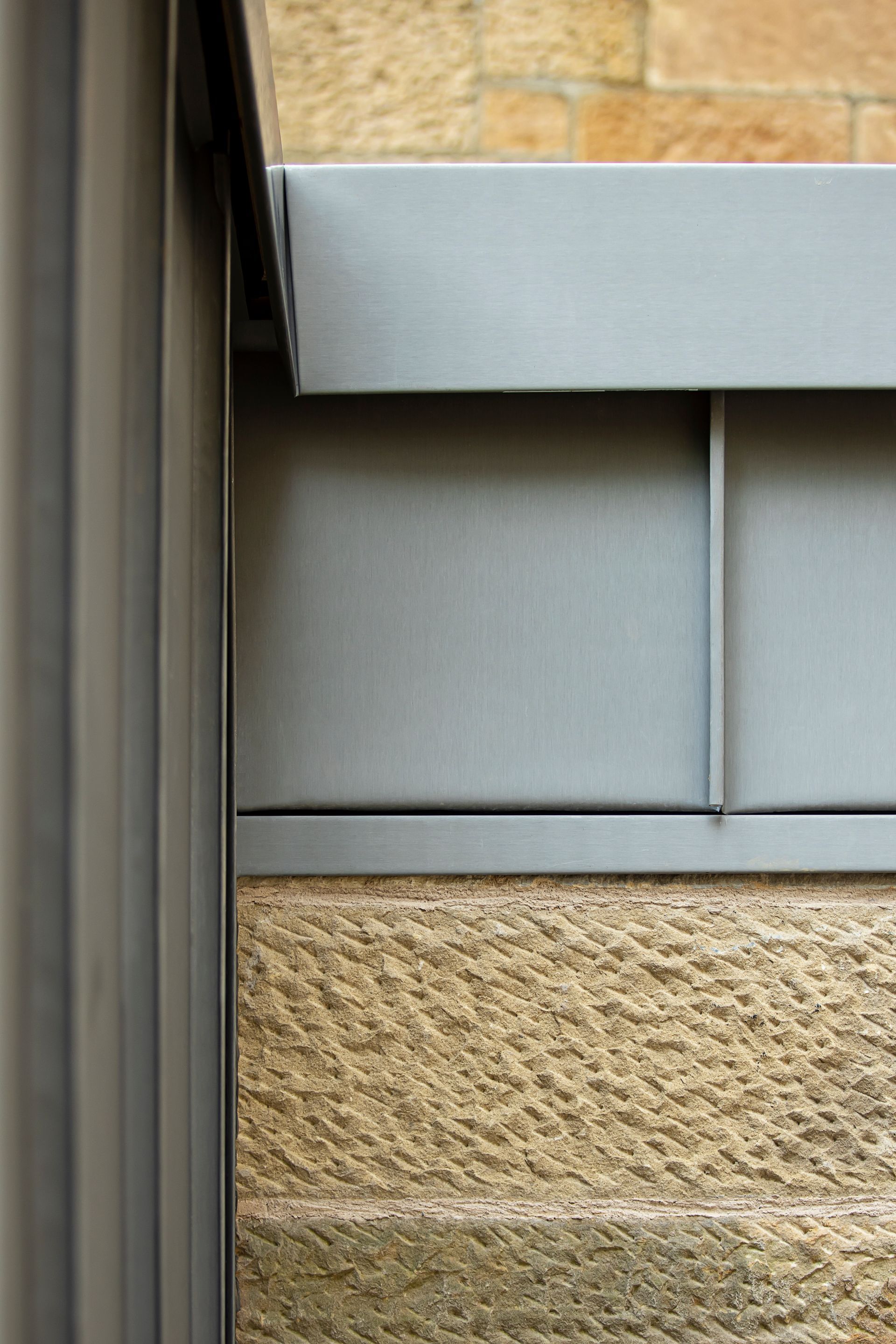 Preserving the building's original architecture, particularly the charming Corinthian design, was a priority in designing the extension. The exterior contrasts the blonde sandstone with zinc cladding, celebrating both the old and the new elements of the structure. Meticulous attention to detail in the metalwork complements the traditional construction, resulting in a polished finish that is both beautiful and durable. The use of triple-glazed sliding doors and a well-insulated timber structure ensures year-round comfort in the extension.