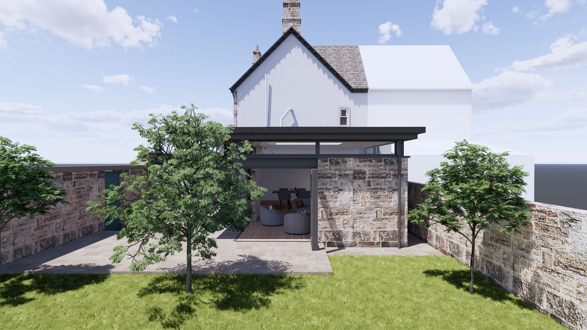 The approved design rationalises the internal layout, creating a meaningful connection with the garden. The contemporary form distinguishes the extension from the original sandstone, celebrating old and new.