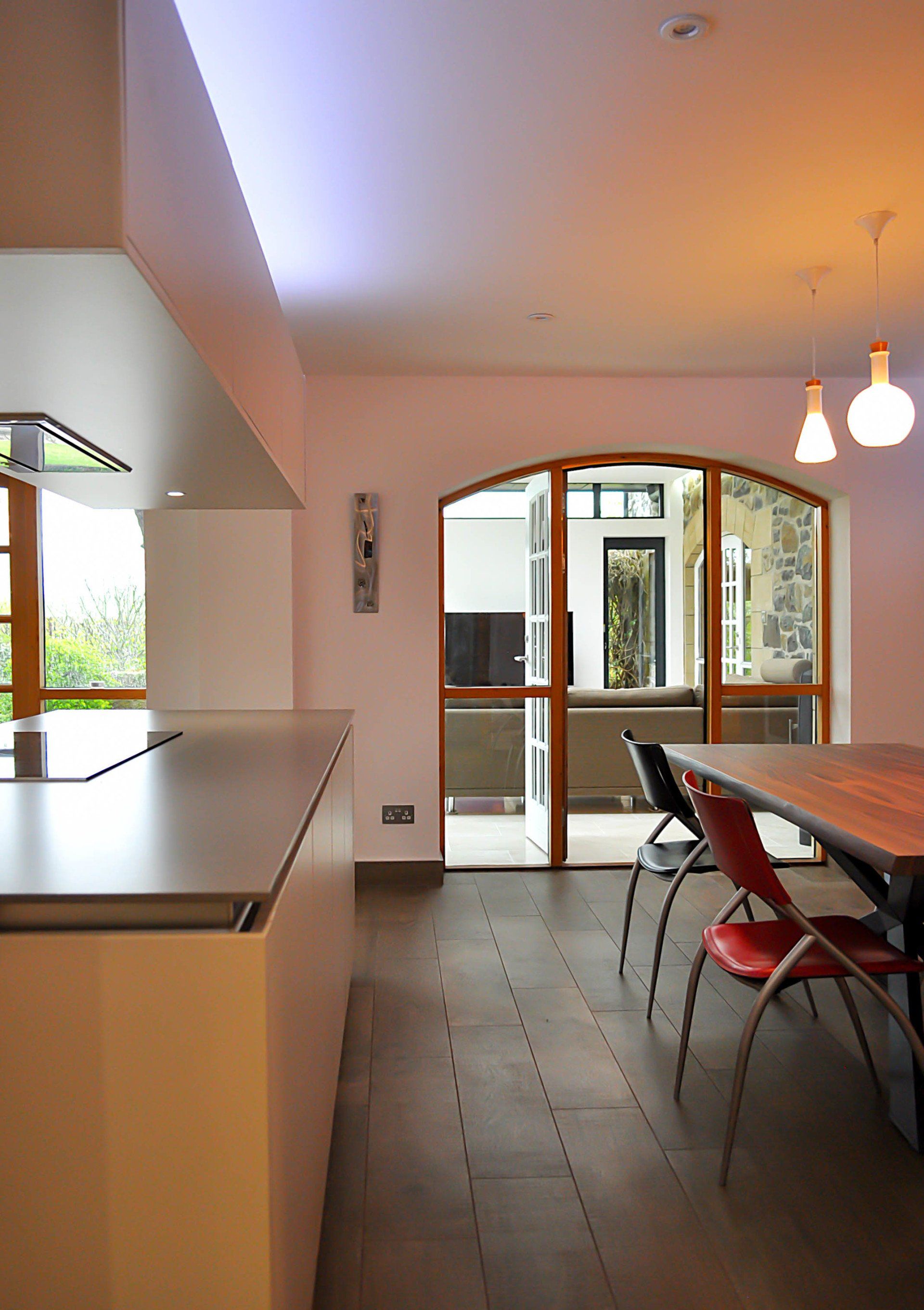 A crisp, contemporary extension to contrast and compliment the traditional aesthetic of the existing property.
